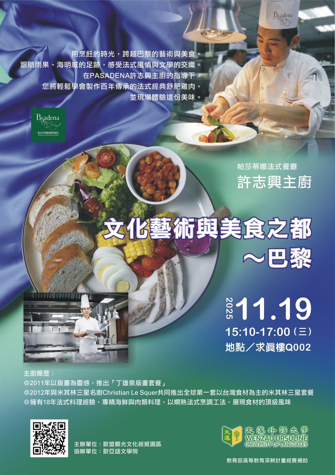 邀請參加歐盟園區專題演講「文化藝術與美食之都~巴黎」—一同在香氣與藝術之間,品味巴黎的靈魂(11/19、15:10~17:00)